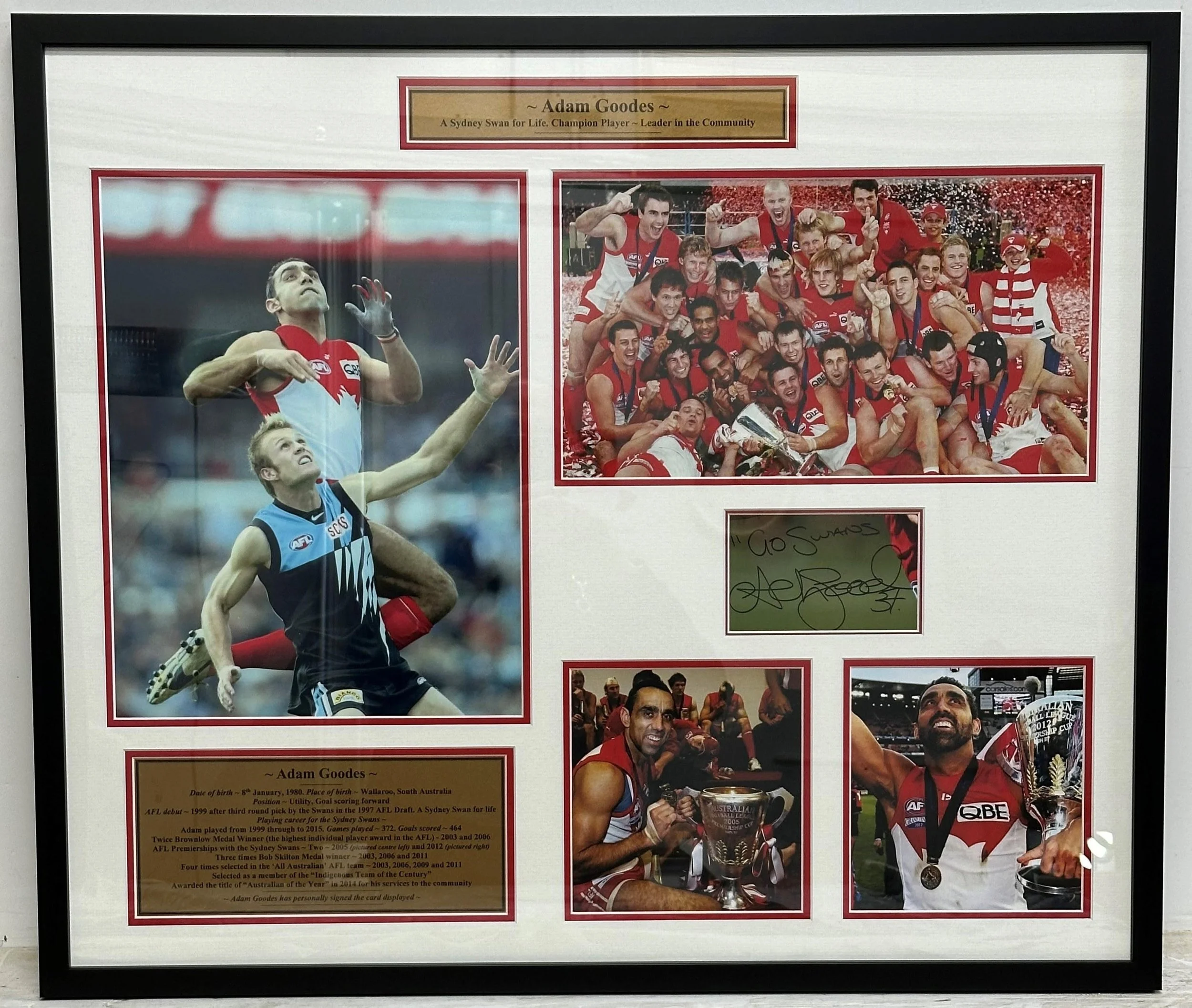 Personally signed by Swans legend Adam Goodes