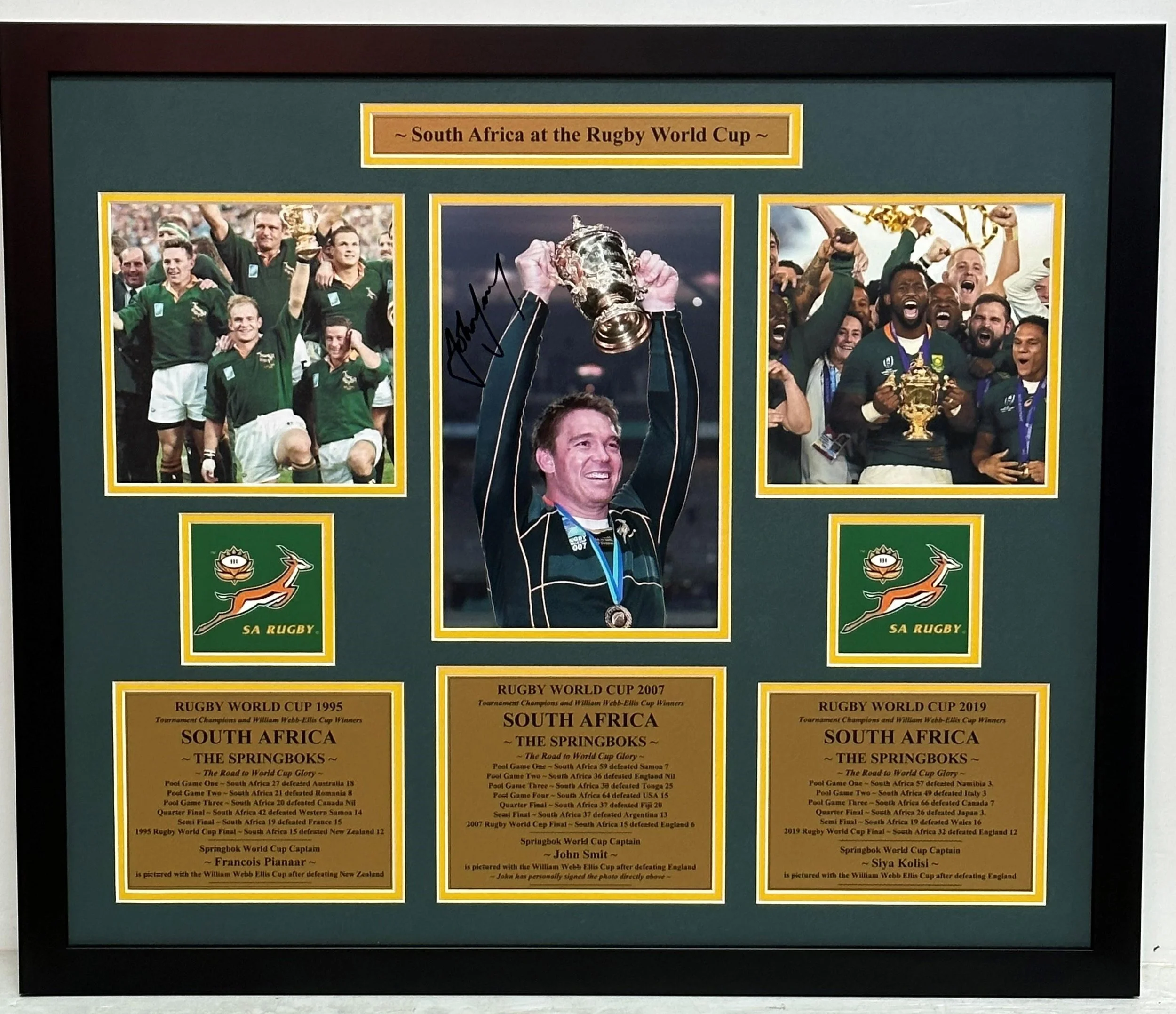 Three World Cup winning Captains personally signed by 2007 Captain John Smit