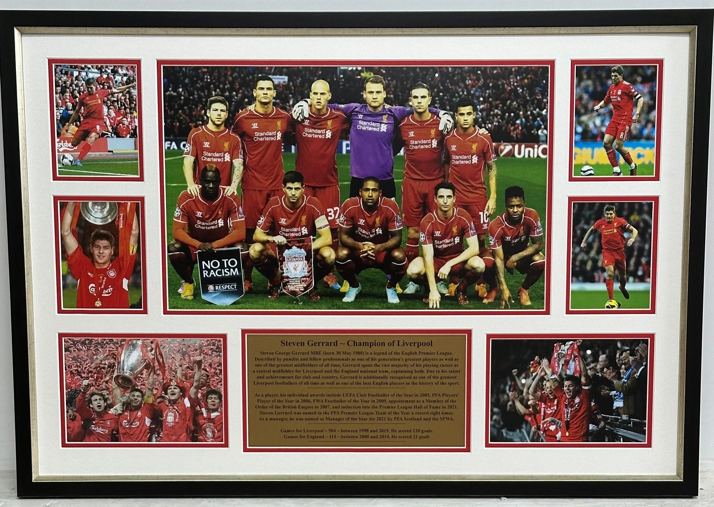 Unsigned pictures and career history plaque