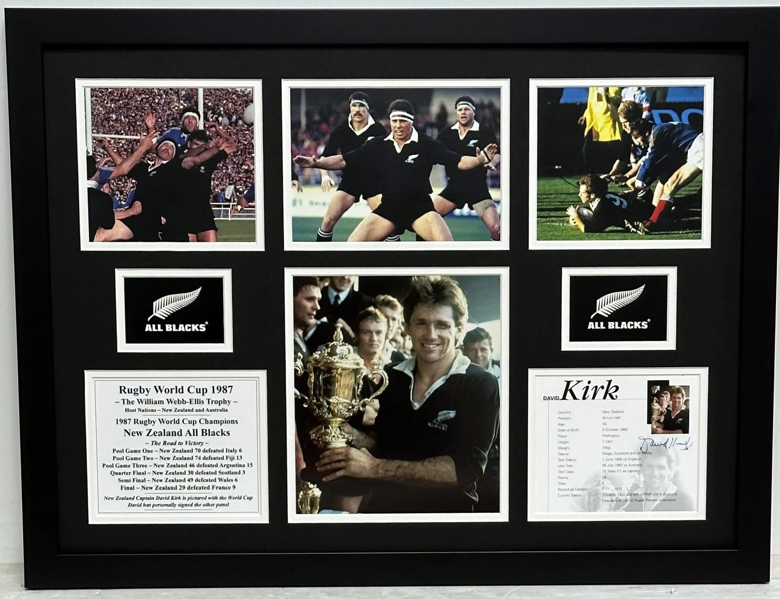 All Blacks 1987 World Cup personally signed by Captain David Kirk